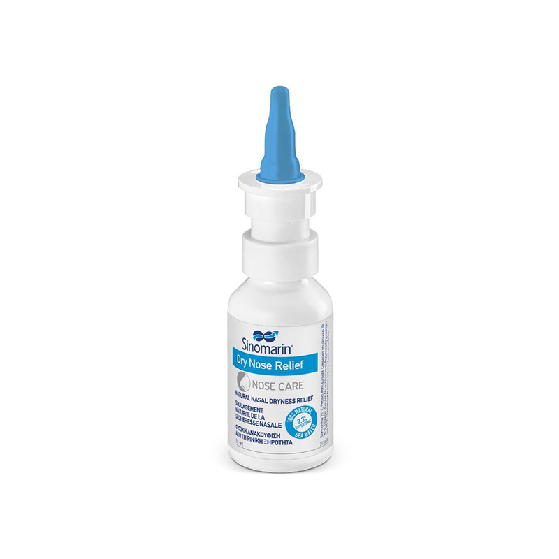 Sinomarin® Dry Nose Relief je 100 % prirodni sprej koji vlaži i smiruje suhu ili nadraženu sluznicu nosa pružajući olakšanje kad je nos začepljen. Njegov jedinstven sastav povezuje dobro dokumentirana svojstva vlaženja i umirujućeg djelovanja hijaluronske kiseline i dekspantenola s prirodnim dekongestivnim djelovanjem i učinkom stanjivanja sluzi hipertonične otopine morske soli (2,3 %-tna otopina NaCl-a).